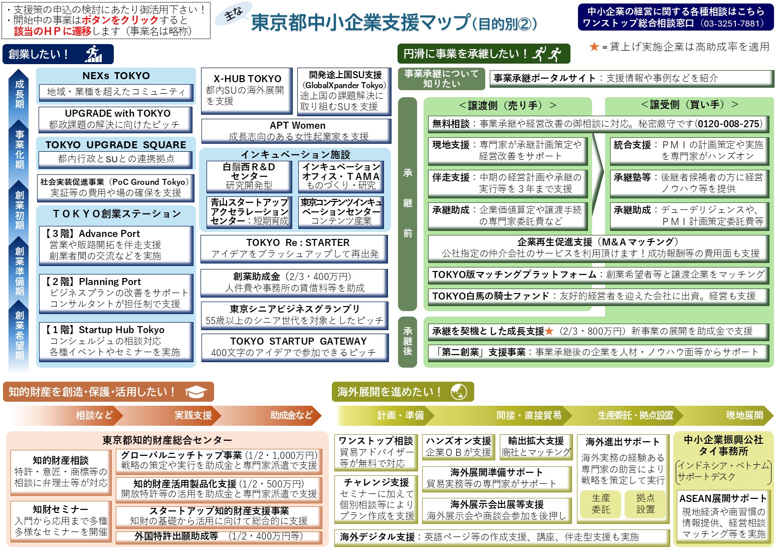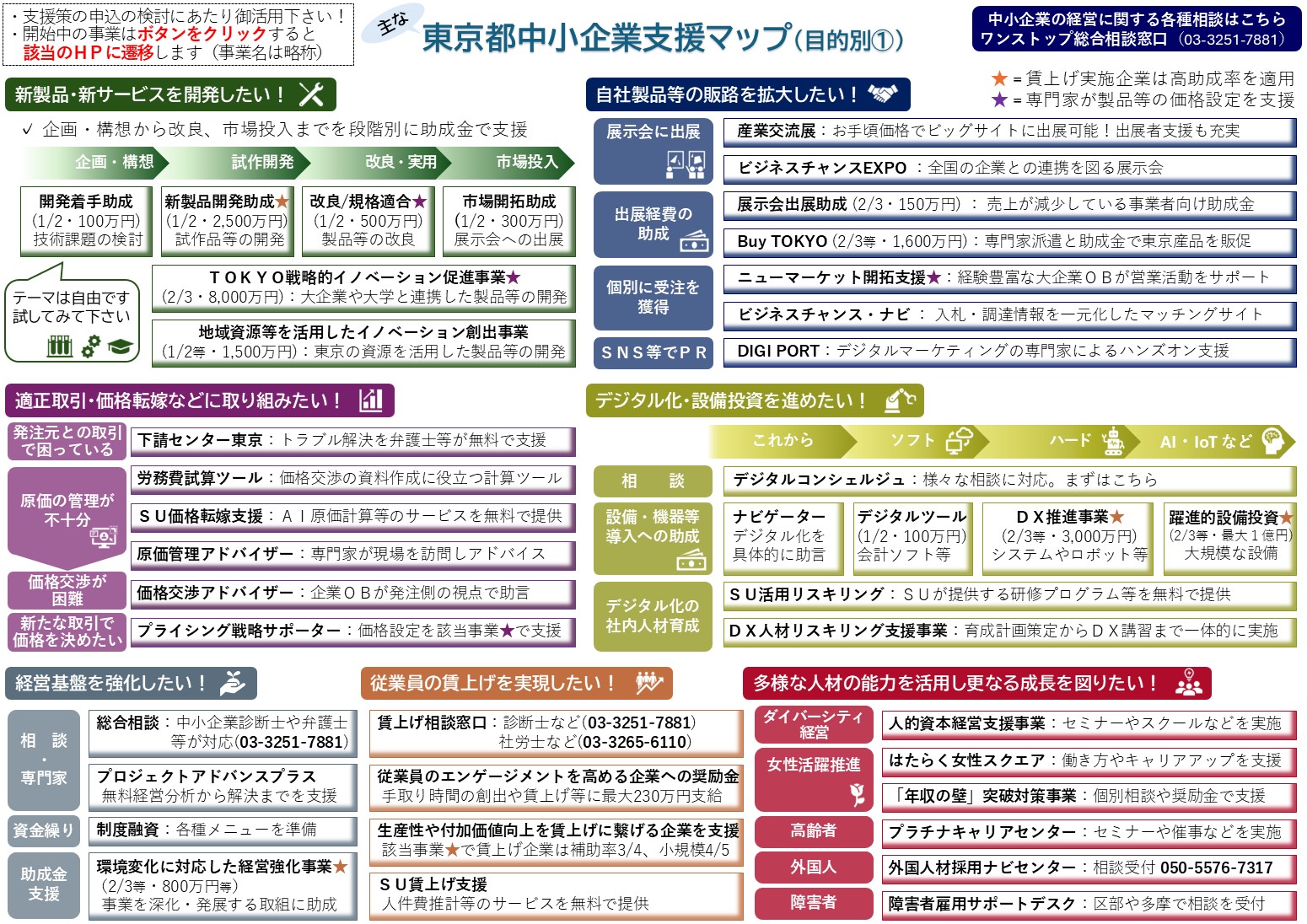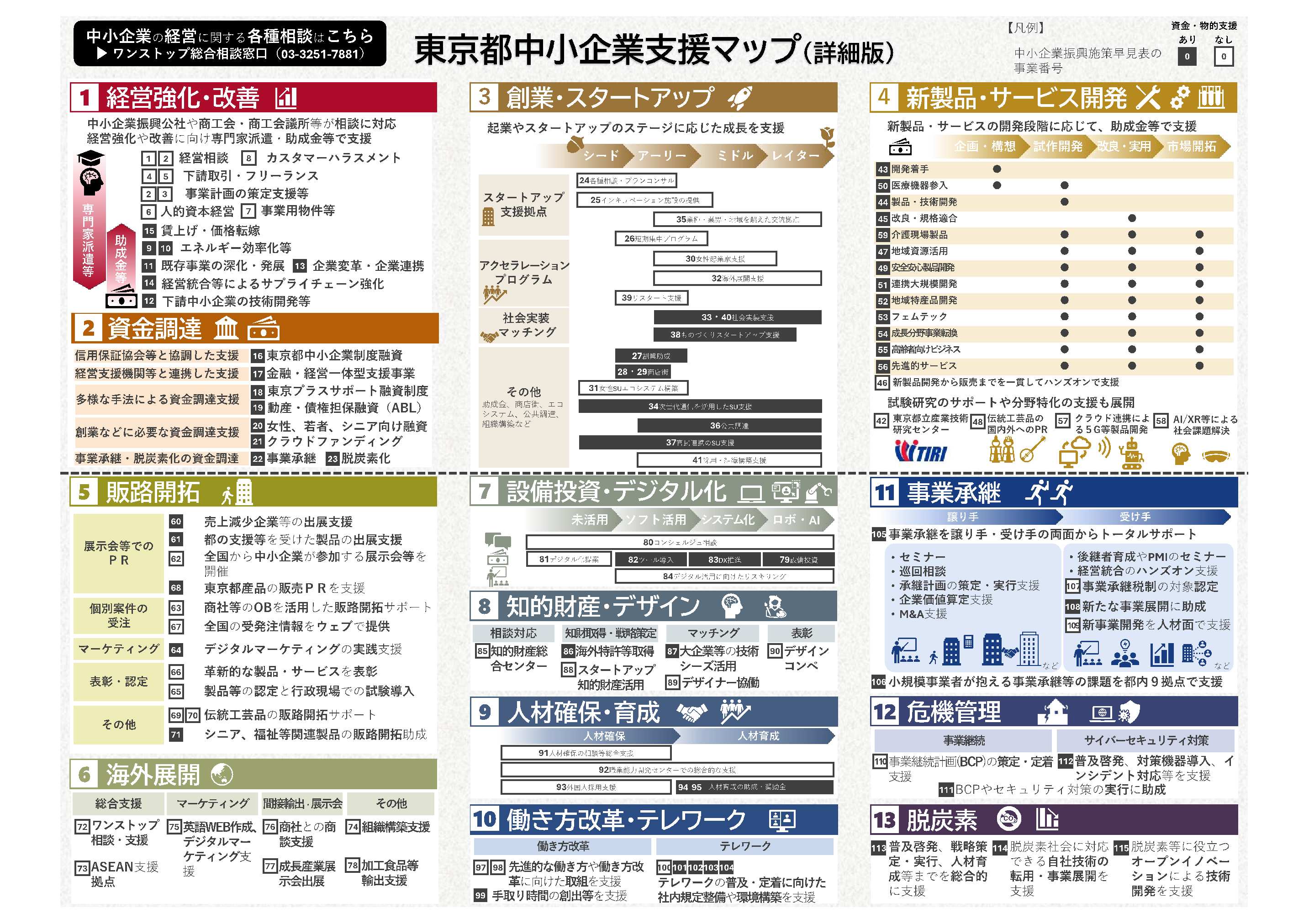 こちらは早見表の内容を整理し、東京都の支援事業をまとめた中小企業支援マップになります。