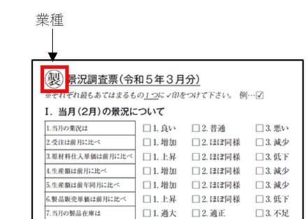 業種によって設問が違いますので、お手元の調査票(ハガキ)裏面左上の業種をご確認ください。